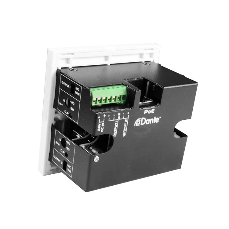 A interface Dante 2CH Dante 2 MIC/LINE ENTRADAS X 2 SAUTES Painel de interface é perfeita para aplicativos profissionais de áudio, como salas de conferências, configurações de som ao vivo, estúdios de transmissão e sistemas AV instalados, onde é necessária uma conversão confiável de Dante-Analog e analógico para dante. Seu design montado na parede permite uma integração limpa e eficiente em vários ambientes, mantendo o desempenho de áudio de alta qualidade.